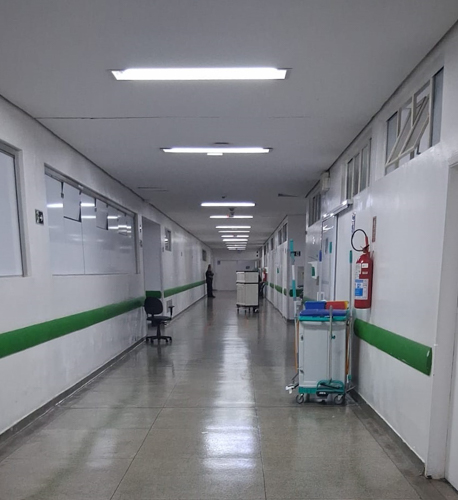 Foto de um dos corredores no Hugo, apresentada pelo secretário de Saúde durante reunião com a equipe do Tribunal